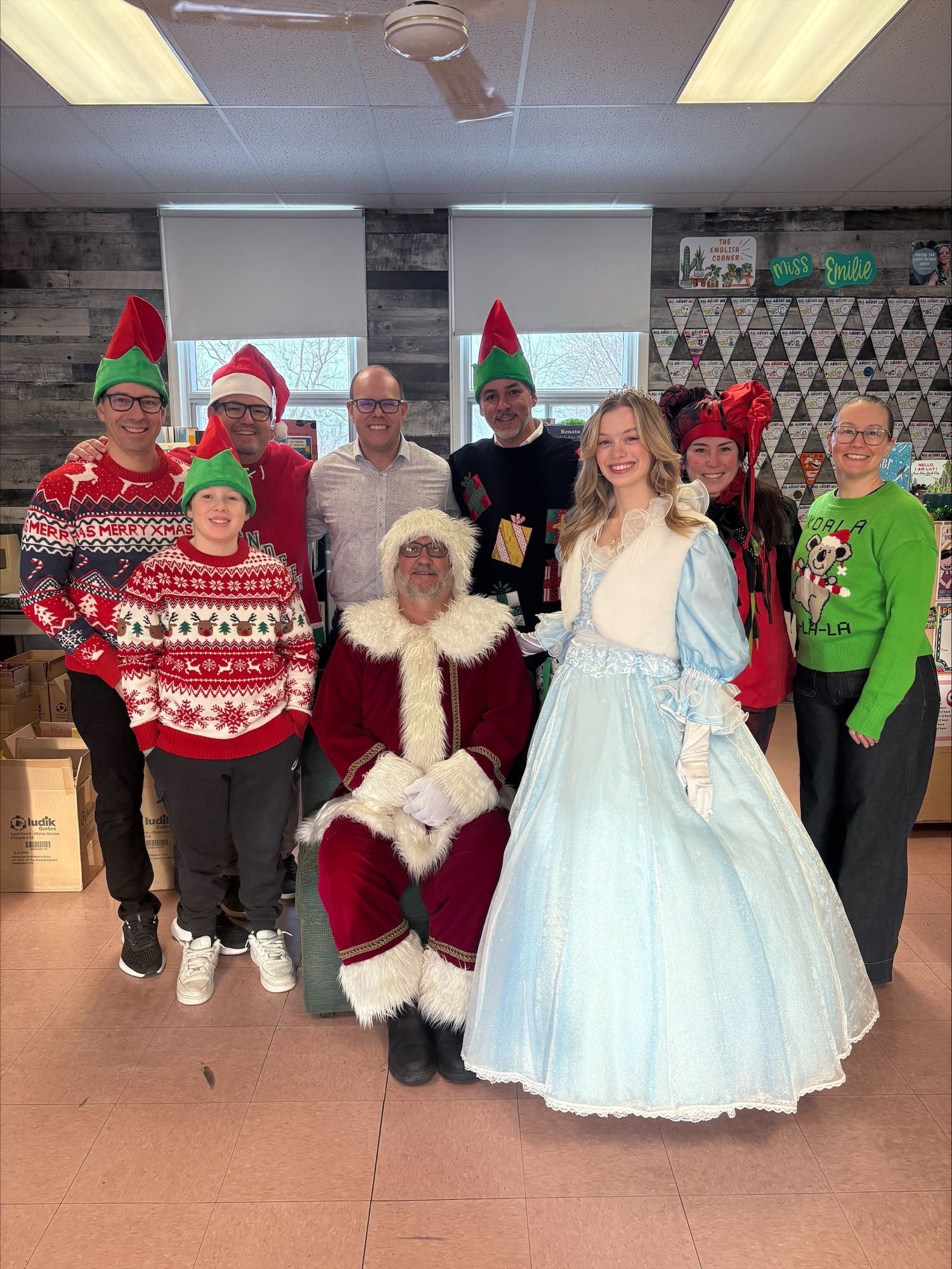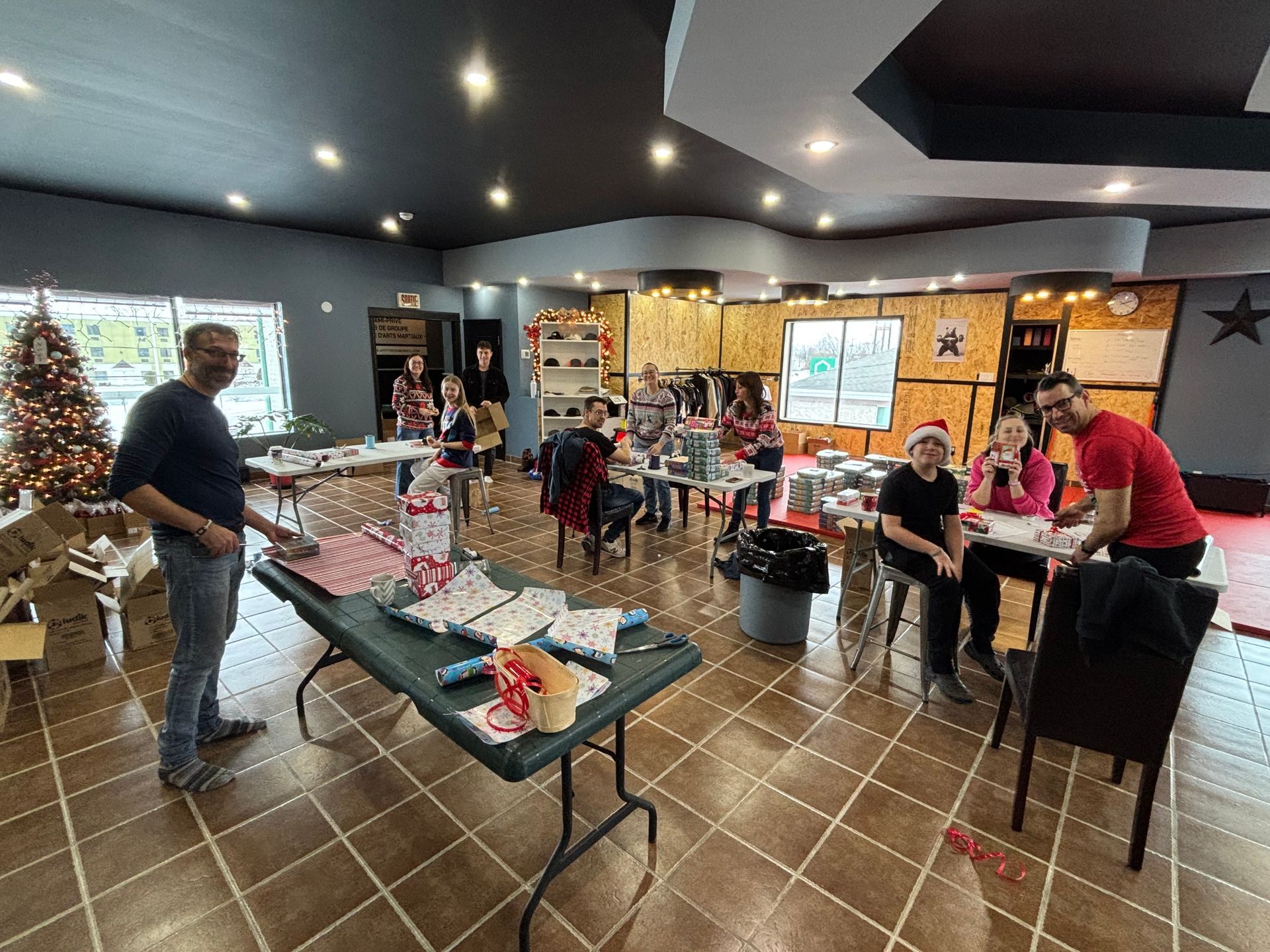 Chaque année, nous nous réunissons entre collègues et avec nos familles pour un après-midi d’emballage festif. Ensemble, nous préparons avec soin les jeux de société qui seront remis à chaque enfant. Inspirés par la magie du Pôle Nord, le Père Noël ou la Mère Noël, accompagnés de leurs lutins, se joignent à nous pour la journée de remise des cadeaux à l’école, créant un moment féérique et rempli d’émotions.